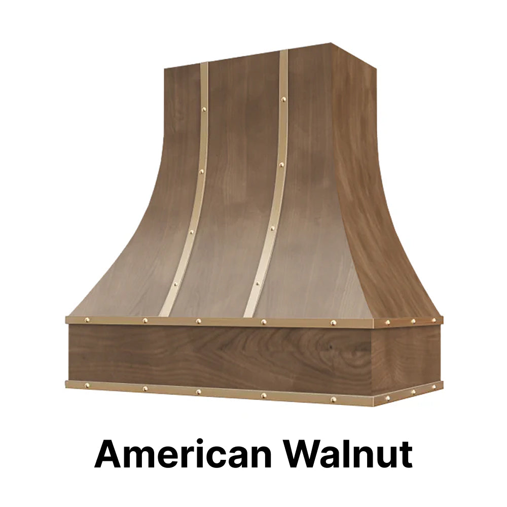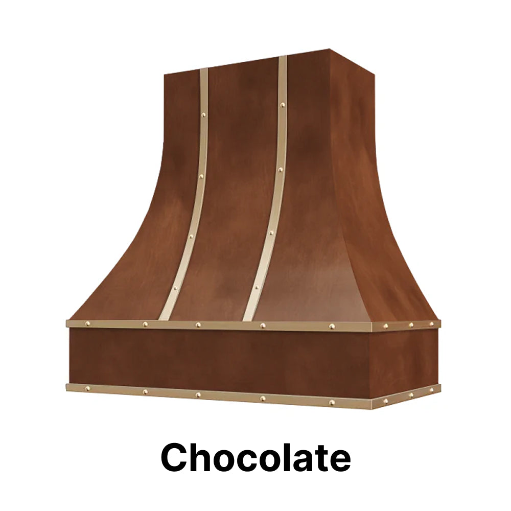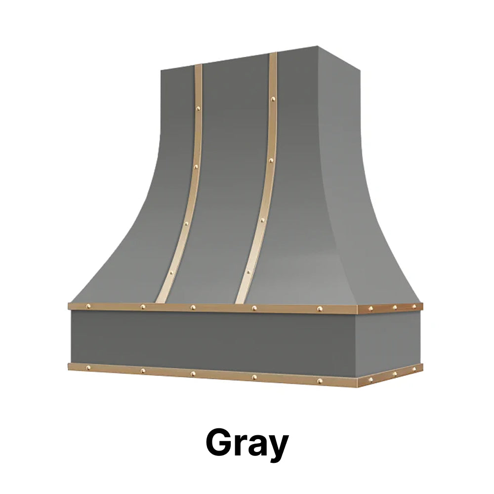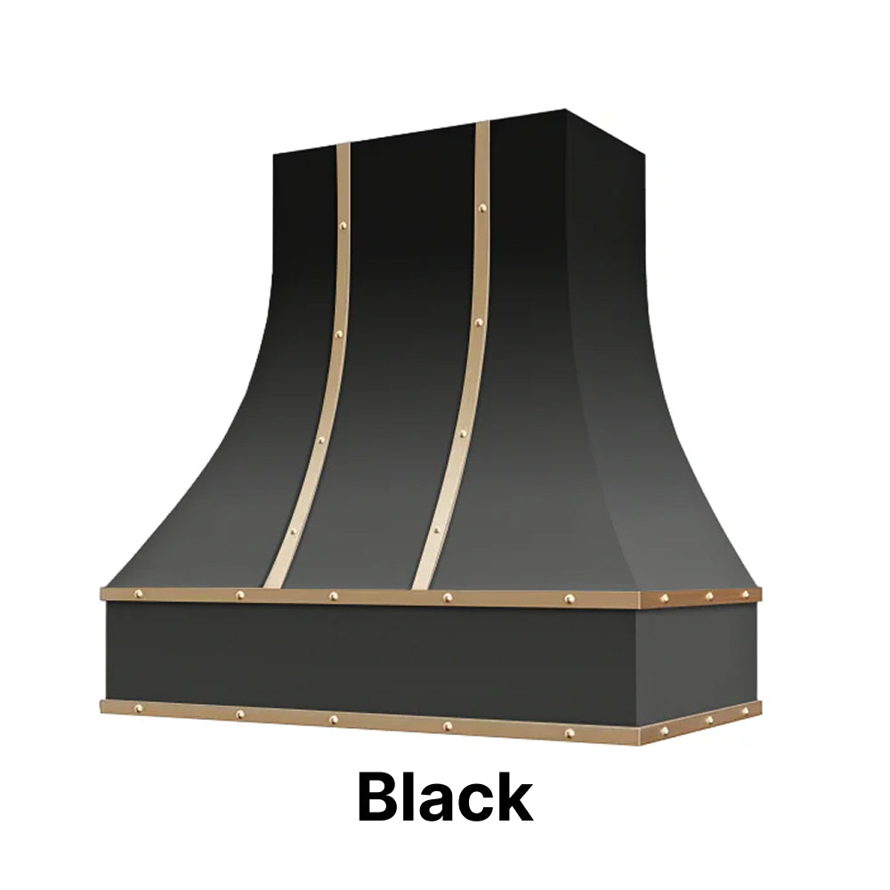 Range Hood With Curved Front, Brass Strapping and Buttons - 30", 36", 42", 48", 54" and 60" Widths Available