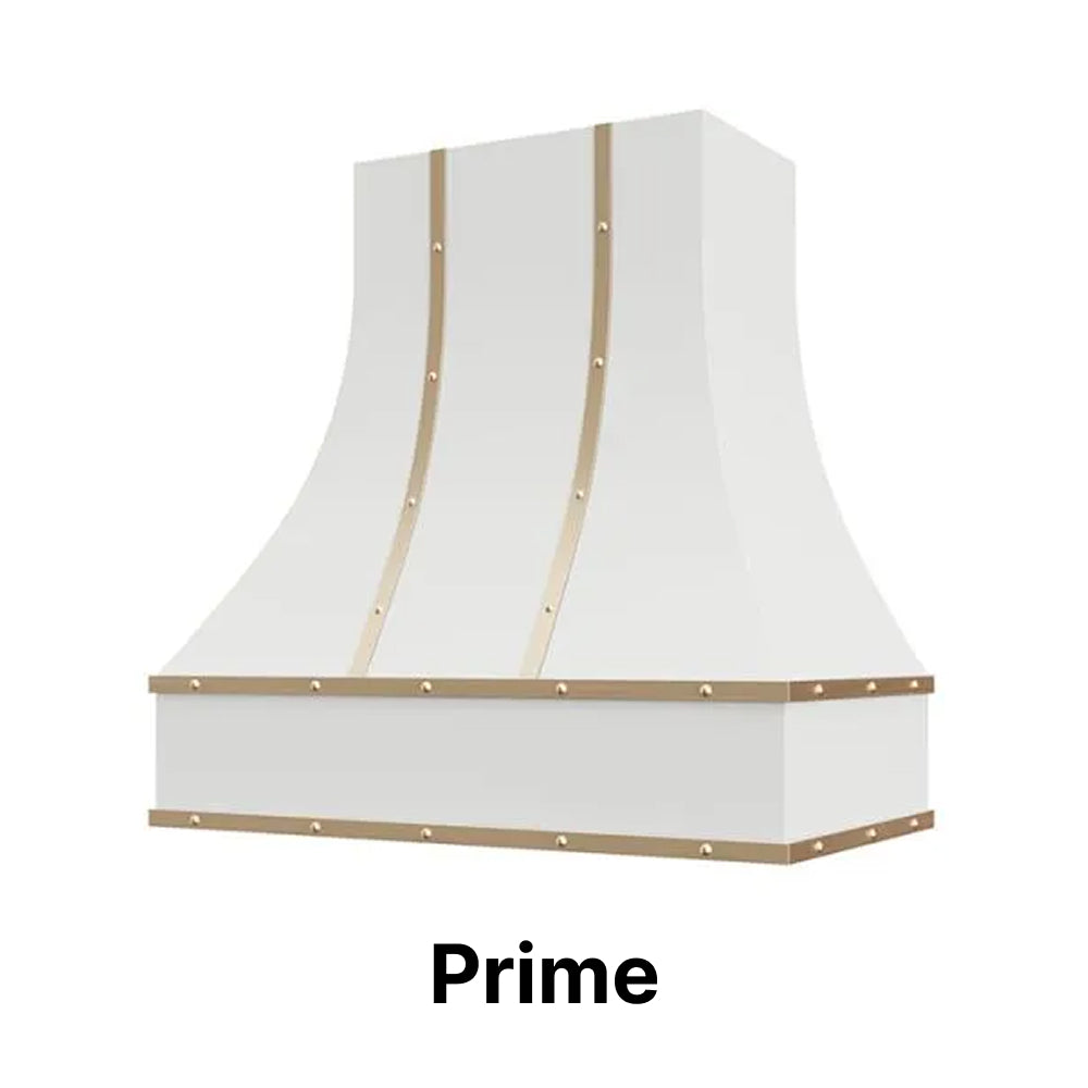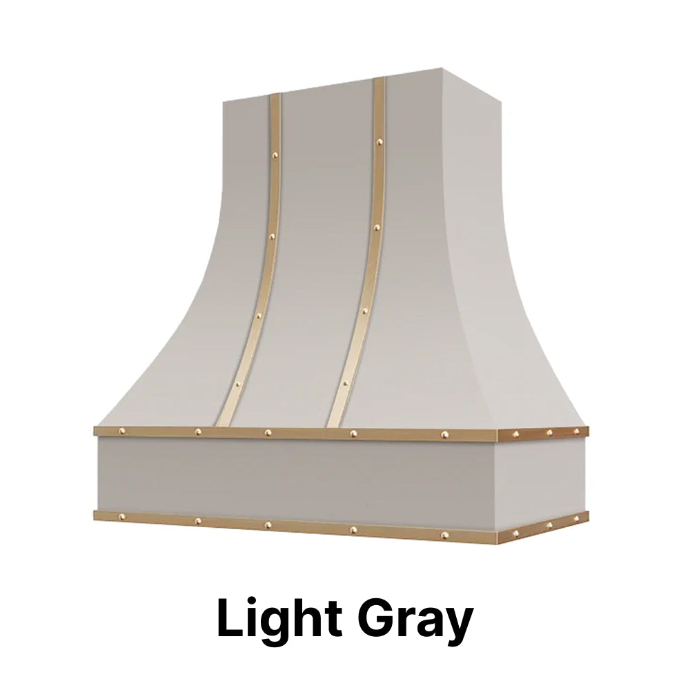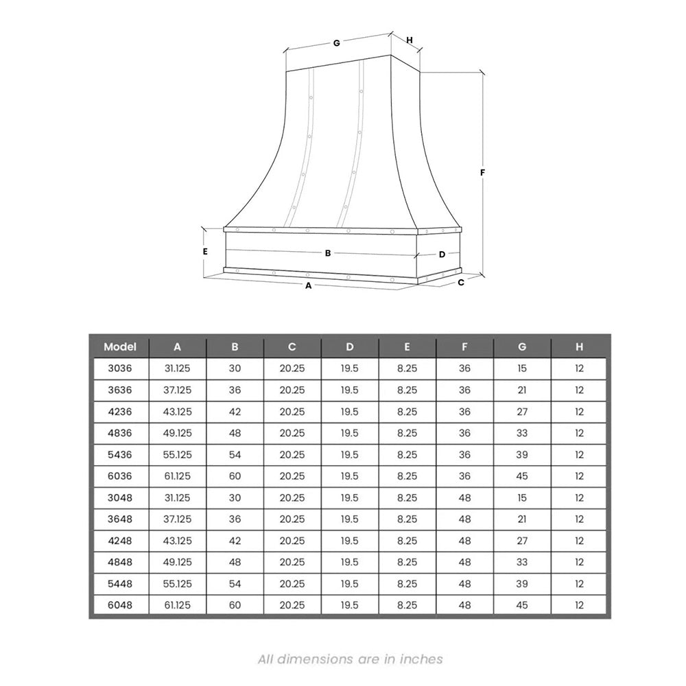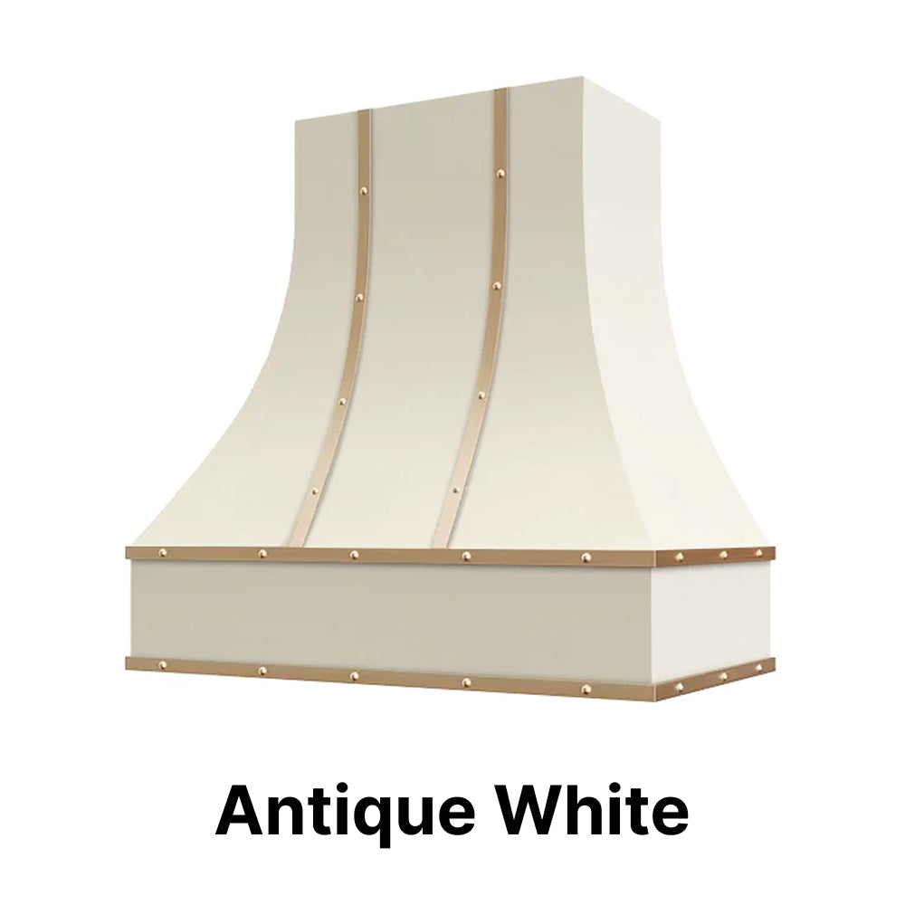 Range Hood With Curved Front, Brass Strapping and Buttons - 30", 36", 42", 48", 54" and 60" Widths Available