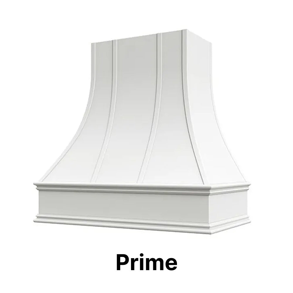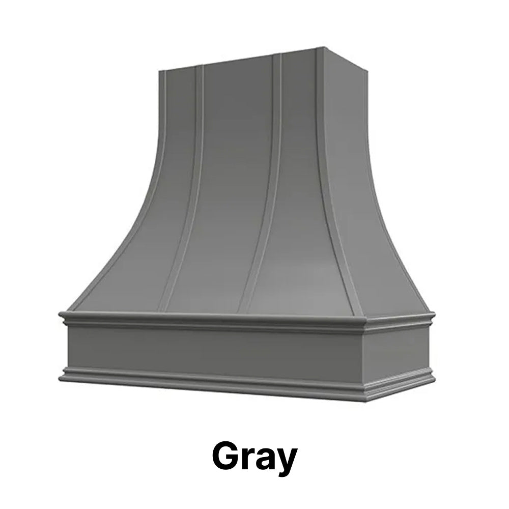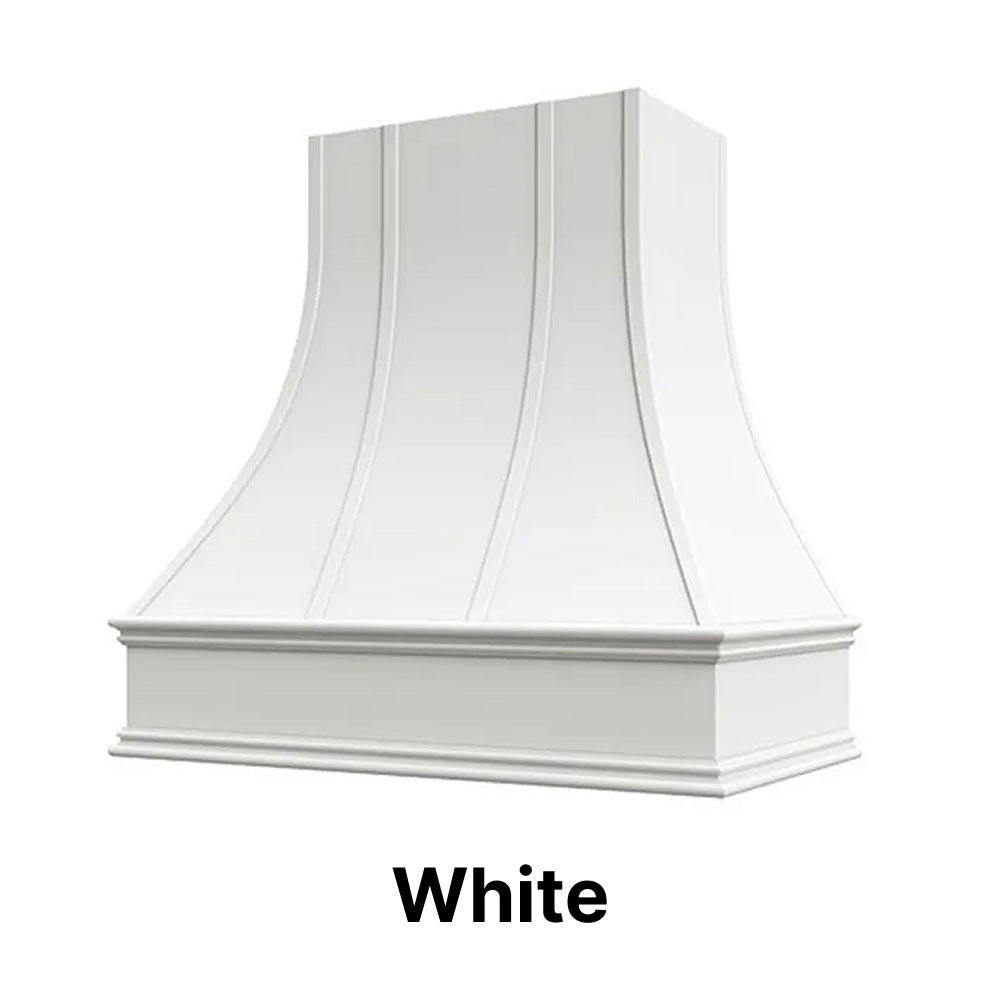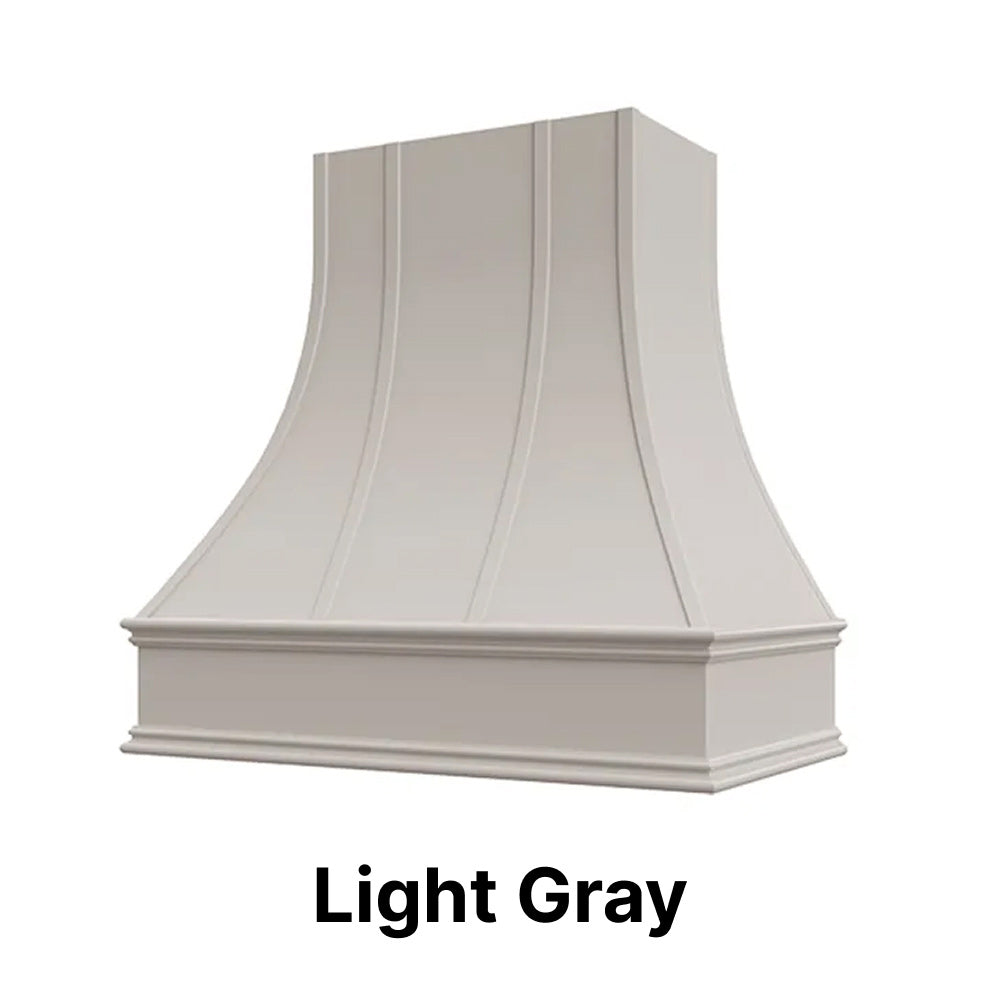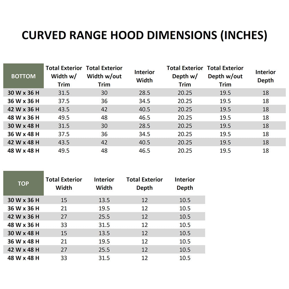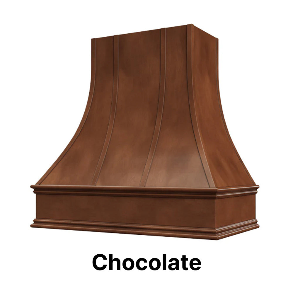 Wood Range Hood With Curved Strapped Front and Decorative Trim - 30" 36" 42" 48" 54" and 60" Widths Available