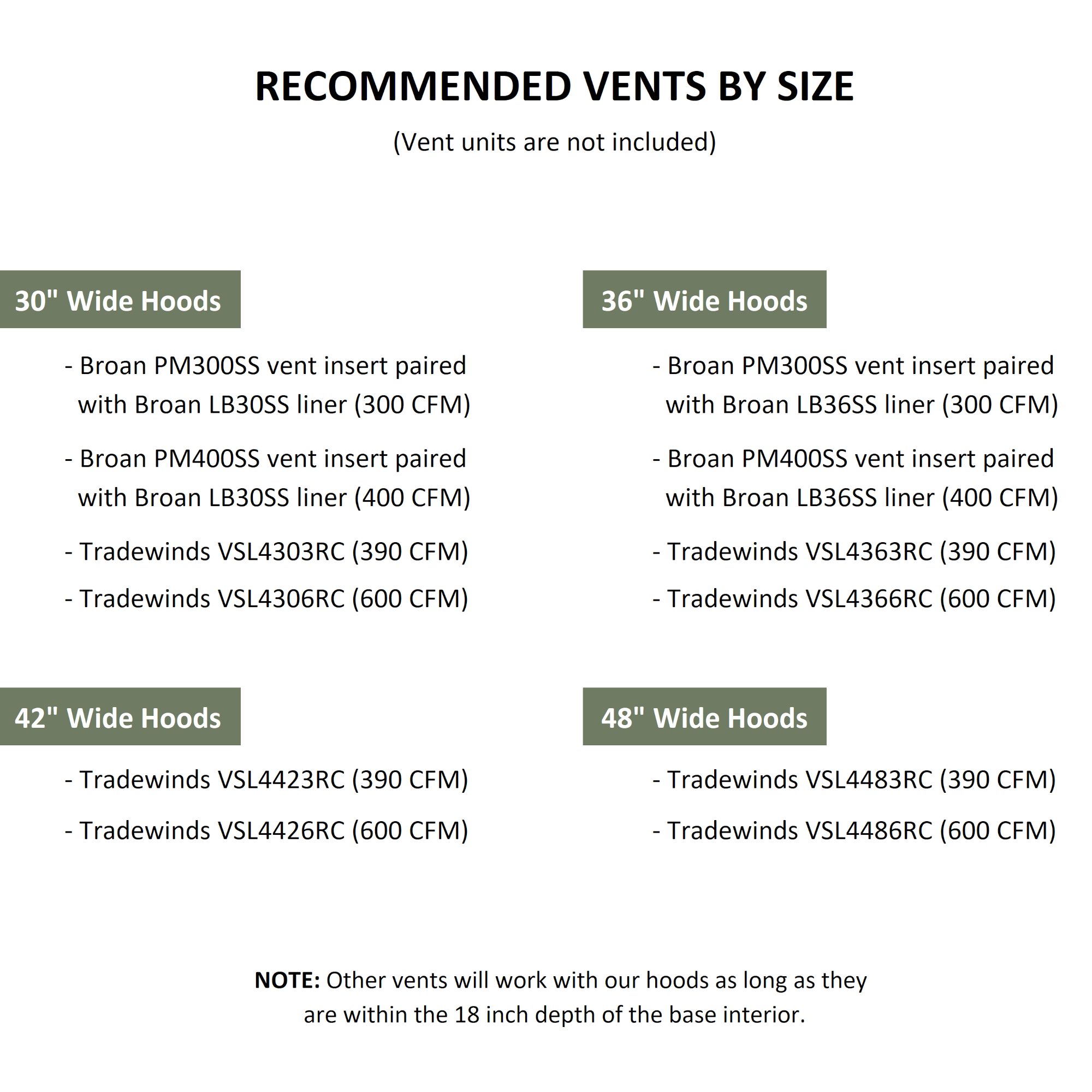 - Broan PM390 paired with Broan LB36 (390 CFM)