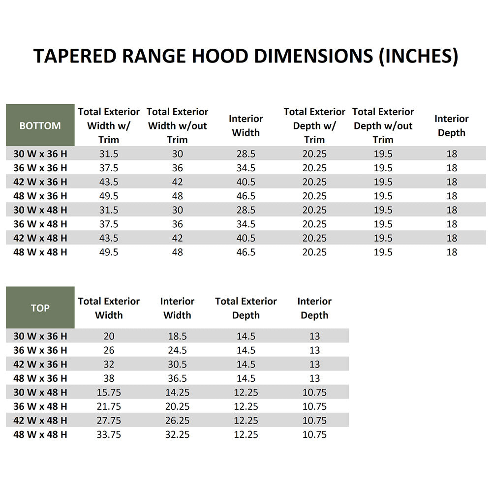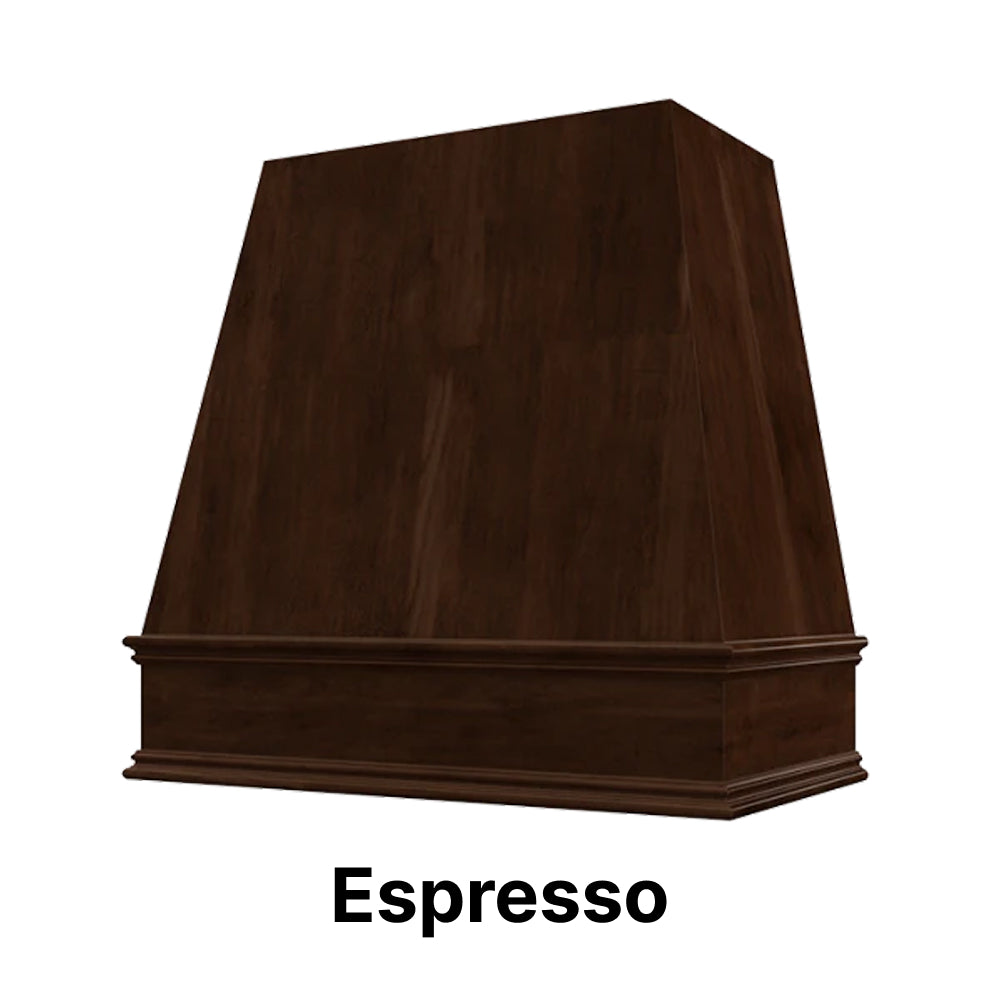 Wood Range Hood With Tapered Front and Decorative Trim - 30", 36", 42", 48", 54" and 60" Widths Available
